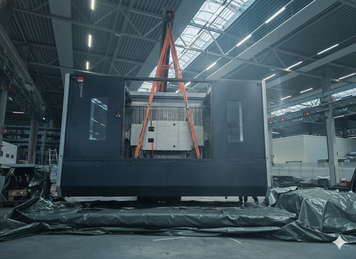 Sicherer Transport und komplette Verlagerung von Maschinen und Industrieanlagen – inklusive fachgerechter Demontage, präziser Positionierung, Installation und Ausrichtung neuer Maschinen.